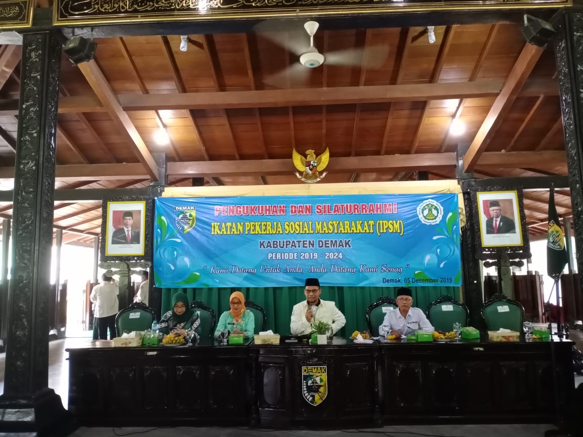 Demak, Dalam peraturan Menteri Sosial Republik Indonesia Nomor 10 Tahun 2019 pasal 5 disebutkan bahwa tugas-tugas PSM ( Pekerja Sosial Masyarakat ) adalah membantu penanganan masalah sosial, mendorong, menggerakan dan mengembangkan kegiatan penyelenggaraan, kesejahteraan sosial Hal itu disampaikan Bupati Demak H.M. Natsir pada saat pengukuhan IPSM ( Ikatan Pekerja Sosial Masyarakat ) Kabupaten Demak periode 2019 sd 2024 bertempat di pendopo berlangsung sangat Hidmat,