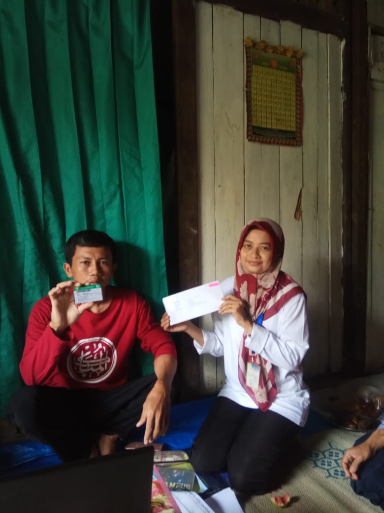 Karangtengah jum’at, 06 maret 2020 pendistribusian kartu KIS PBI APBN tahap 10 tahun 2019 dengan nama penerima Johar Fauzi dukuh Lengkong rt 05 rw 04 Desa Donorejo kec.karangtengah oleh pendamping Erien Yuniarti.