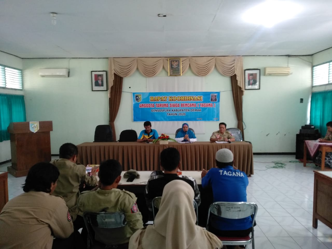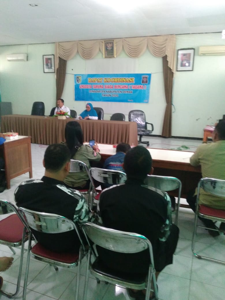 Demak-Pelaksanaan Rapat Koordinasi Taruna Siaga Bencana (TAGANA) tingkat Kabupaten Demak, hari Jumat tanggal 13 Maret 2020 jam 13.30-16.00 WIB betempat di Aula Dinas Sosial, Pemberdayaan Perempuan dan Perlindungan Anak Kabupaten Demak.