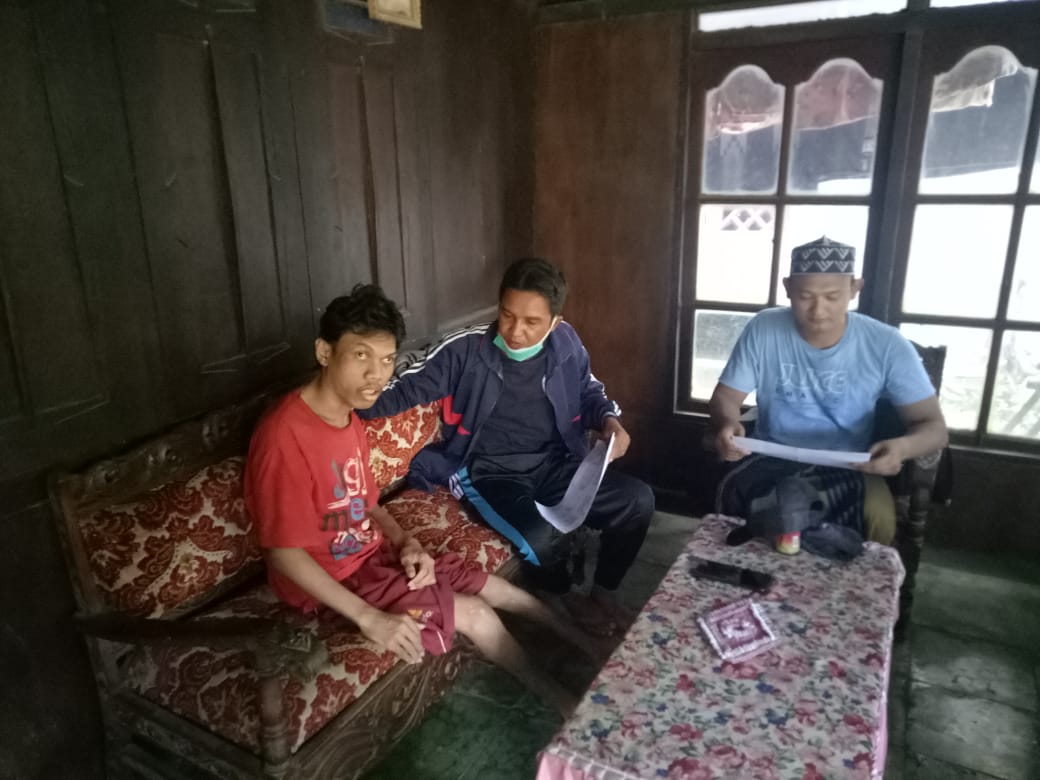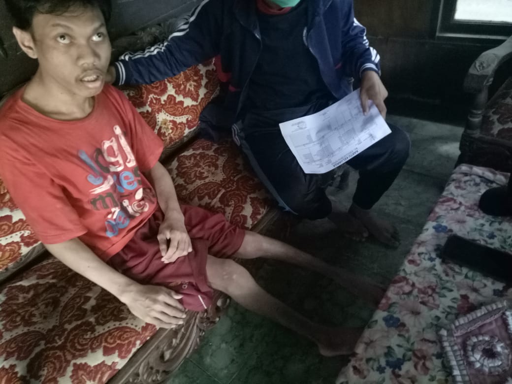 Wedung-Dalam rangka mengklarifikasi lapor Gub, verifikasi, assessment dan Home Visit/Kunjungan ke Rumah keluarga Penyandang Disabilitas Ganda Ahmad Muhib, di Desa Kedungmutih Rt 02 Rw 03 dilakukan pada hari Minggu, 5 April 2020, pukul 10.30 WIB oleh TKSK Kecamatan Wedung (Hardi) dan Pendamping Sosial PKH Kecamatan Wedung, untuk melihat kondisi keadaan yang sebenarnya apa yang perlu dibantu atau dibutuhkannya.