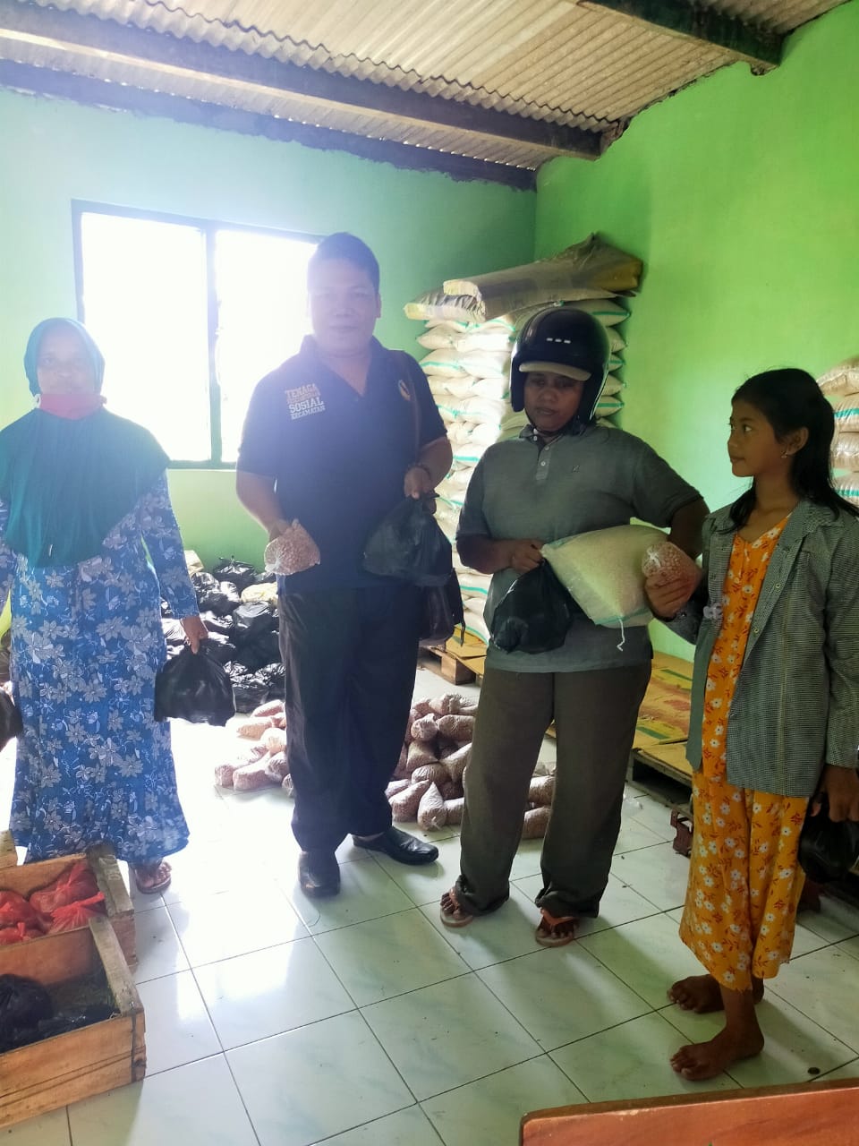 Mranggen-Pada hari Jum’at tanggal 10 April 2020 pukul 11.15 WIB, TKSK Kecamatan Mranggen (Mat Rozikan) melaksanakan monitoring dan evaluasi Program Bantuan Sosial Pangan/Sembako di e-warong Desa Batursari Kecamatan Mranggen. Adapun komoditas yang diberikan kepada KPM berupa sebagai berikut beras, telor, kacang tanah dan buah manggis.