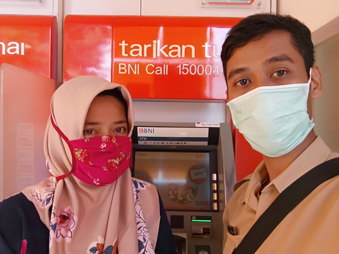 Pendamping Sosial PKH Kecamatan Mranggen (AHMAD MUNTHOHAR,S.Pd.I) mendampingi KPM validasi 2019 dari Desa Menur Kecamatan Mranggen pencairan Dana PKH di BNI Cabang Pembantu Bandungrejo Mranggen, pada Senin tanggal 13 April 2020 pukul 09.30 WIB.