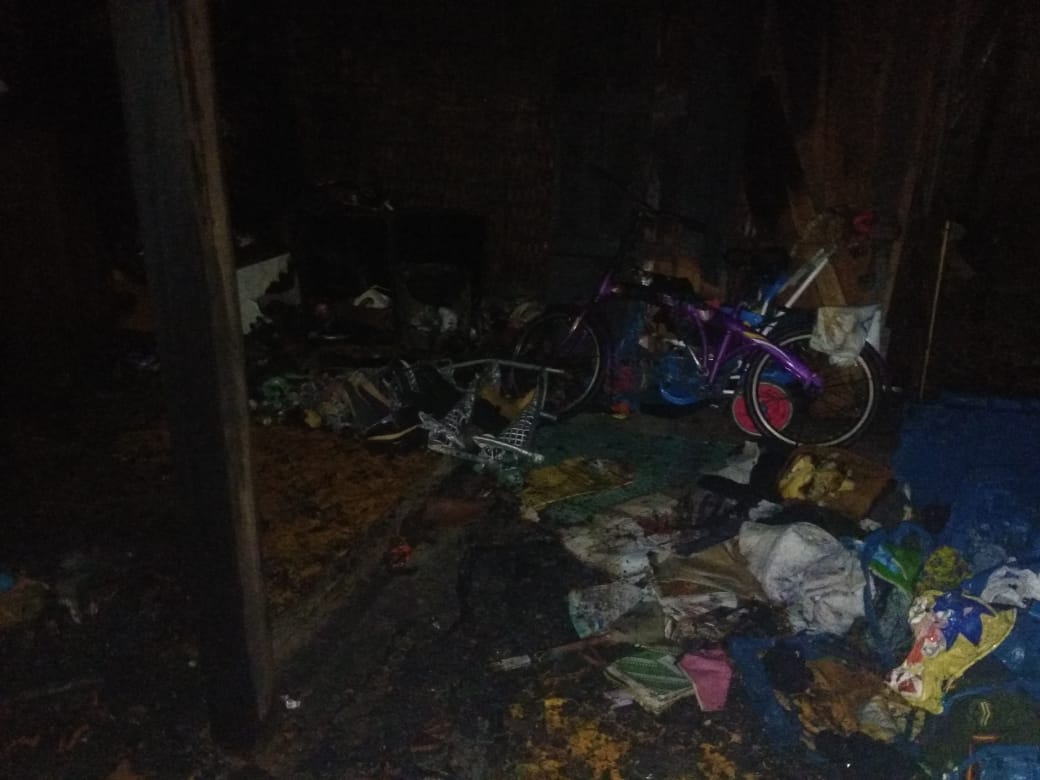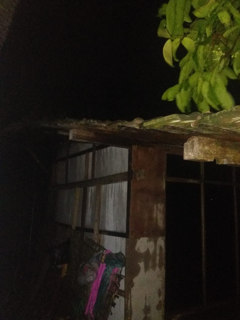 Bangunan rumah yang terbakar di bagian ruang tengah dan atap yang berukuran 3 x 4 meter yang terbuat dari papan dan kayu serta lantai dari plester semen,1 (satu) unit TV 21 inch, 1 (satu) unit Sepeda motor Yamaha Jupiter Z warna putih biru No. Pol : H 2729 QE terbakar pada bagian kanan, 1 (satu) unit sepeda angin, 1 (satu) buah lemari berisi pakaian dan perabot rumah tangga terbakar seluruhnya.