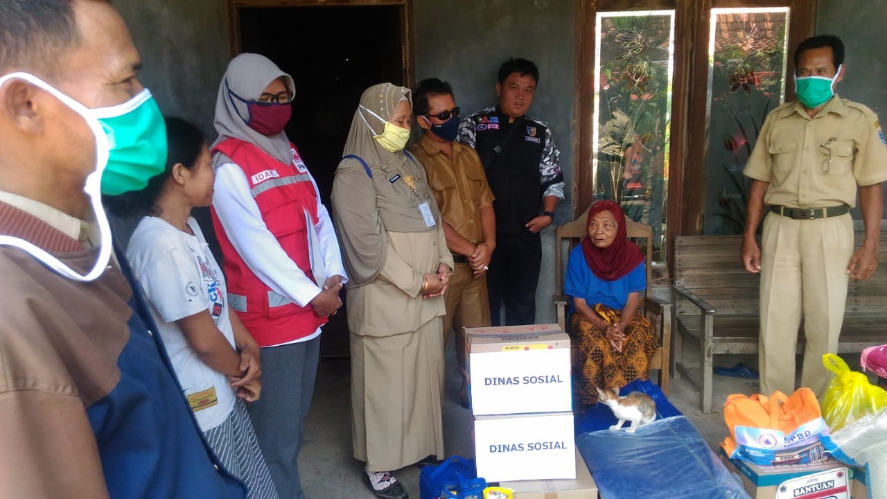Pemberian bantuan kepada Nenek SUMIRAH Desa Karangsono Rt 01 Rw 02 Kecamatan Mranggen dilaksanakan tanggal 13 April 2020 oleh Tim Kebencanaan Kabupaten Demak, yang disaksikan dari Kepala Desa Karangsono dan Perangkat Desanya. Tim Kebencanaan dari Kabupaten Demak yang terdiri dari BPBD, Dinsosp2pa dan PMI.