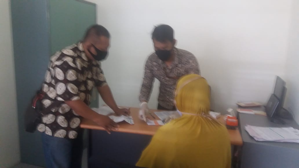 Pada hari Selasa 14 April 2020 pukul 10.50 WIB Pendamping sosial PKH Kecamatan Mranggen PRATHIAN D WIDAGDO,S.Pd dalam kegiatan pendampingan pengambilan kartu KKS dan Buku Tabungan dari Desa Kangkung Kecamatan Mranggen perluasan validasi Tahun 2019 di Bank BNI Bandungrejo Cabang Undip ditengah mewabahnya Virus Covid-19, dengan mengindahkan protokol kesehatan.