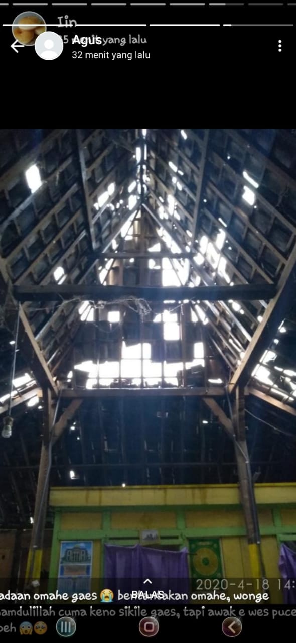Pada hari Sabtu, 18 April 2020 jam 14.00 WIB telah terjadi musibah rumah tersambar petir, pemilik rumah bapak Kasirin dan Ibu Masmiah juga penerima PKH yang beralamat di Desa Mlaten RT 02 RW 02 Kecamatan Mijen.
