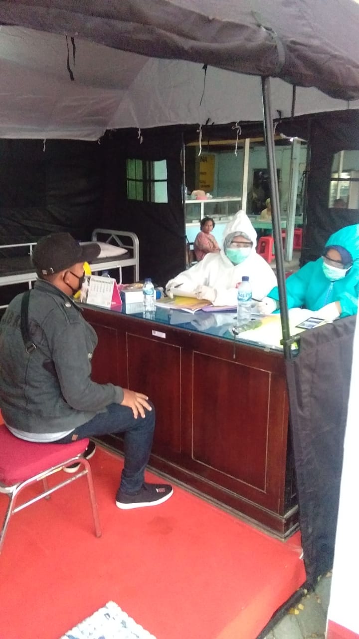 Sayung-Pada hari Kamis tanggal 23 April 2020 pukul 17.10 WIB Pendamping Sosial PKH Kecamatan Sayung (MISBAHUL MUNIR,S.Pd.I) bersama dengan Puskesmas bertempat di lokasi Jalan Raya Onggorawe Sayung meninterview dan pengecekan Kesehatan pemudik warga Kecamatan Sayung dari Jakarta untuk meminimalisir dan penanganan penyebaran Covid-19.