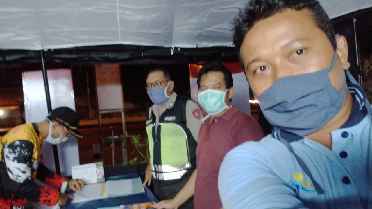 Pada hari Jum’at tanggal 24 April 2020 Pukul 21.00 WIB Koordinator Kecamatan (Korcam) Pendamping Sosial PKH Kecamatan Sayung (BUDI WAHYONO,S.Sos.I) melaksanakan Piket posko Covid-19 Kecamatan Sayung, bersama dengan Puskesmas, Koramil, Polsek, Aparat Desa dan Relawan, bertempat di lokasi Jalan Raya Onggorawe Sayung, Dalam rangka memantau dan membantu mengecek kondisi pemudik atau warga untuk meminimalisir dan penanganan penyebaran Covid-19.