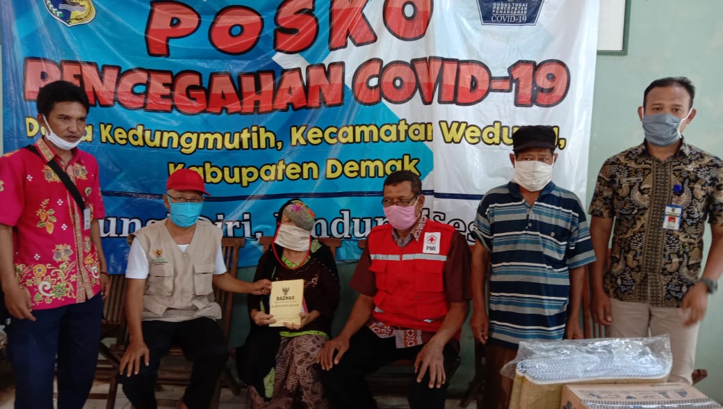 Pemberian bantuan kepada ibu SUTINI Desa Kedungmutih Kecamatan Wedung dilaksanakan pada hari Selasa tanggal 21 April 2020 oleh Tim Kebencanaan Kabupaten Demak, yang disaksikan dari Kasie Kesra Kecamatan Wedung, TKSK, Kepala Desa Kedungmutih dan Perangkat Desanya.