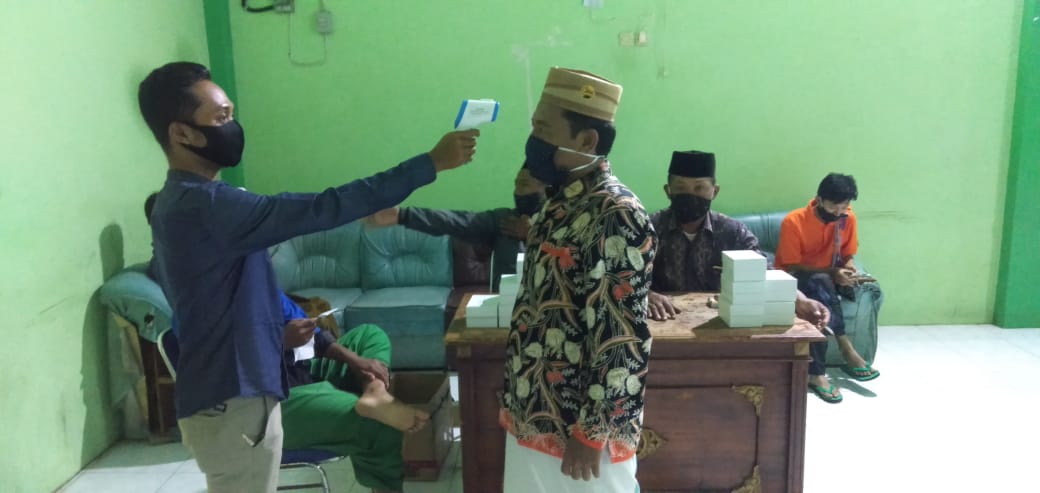 Cek Suhu Badan warga yang Mengikuti Rapat di Desa Poncoharjo Bonang