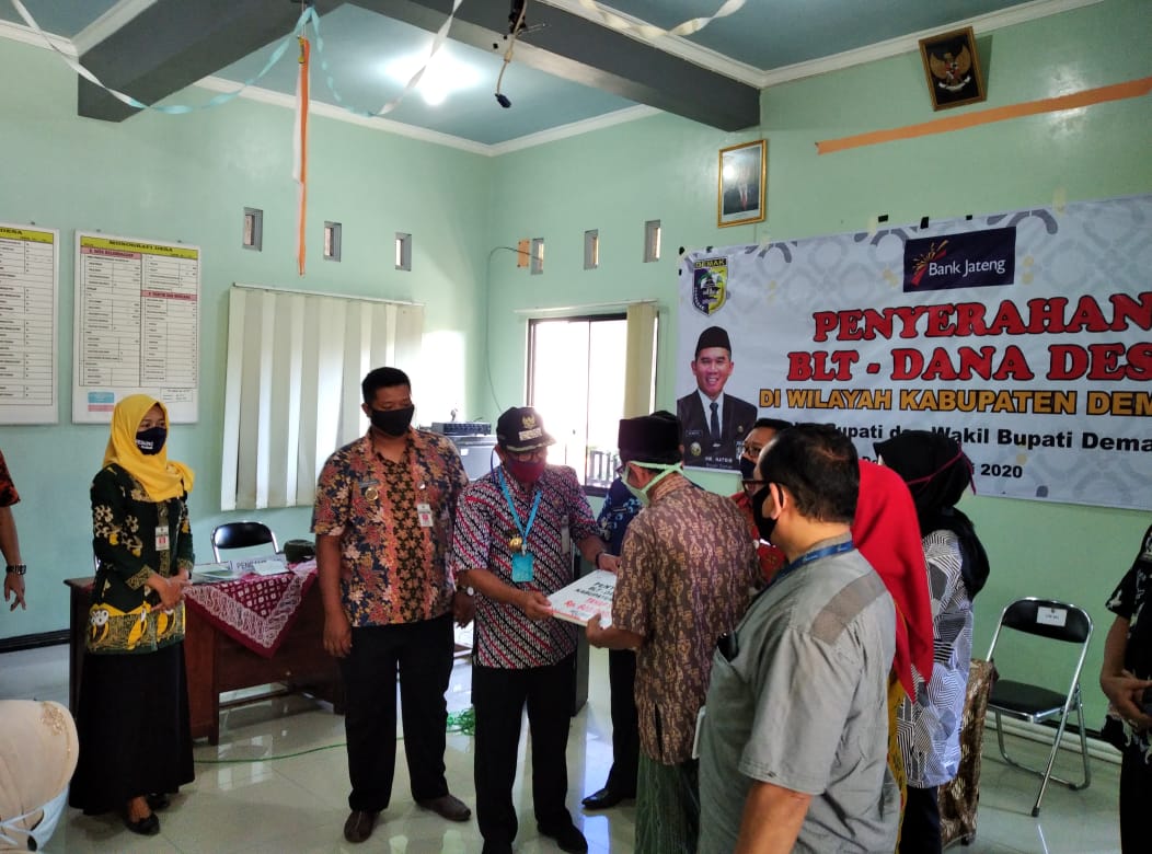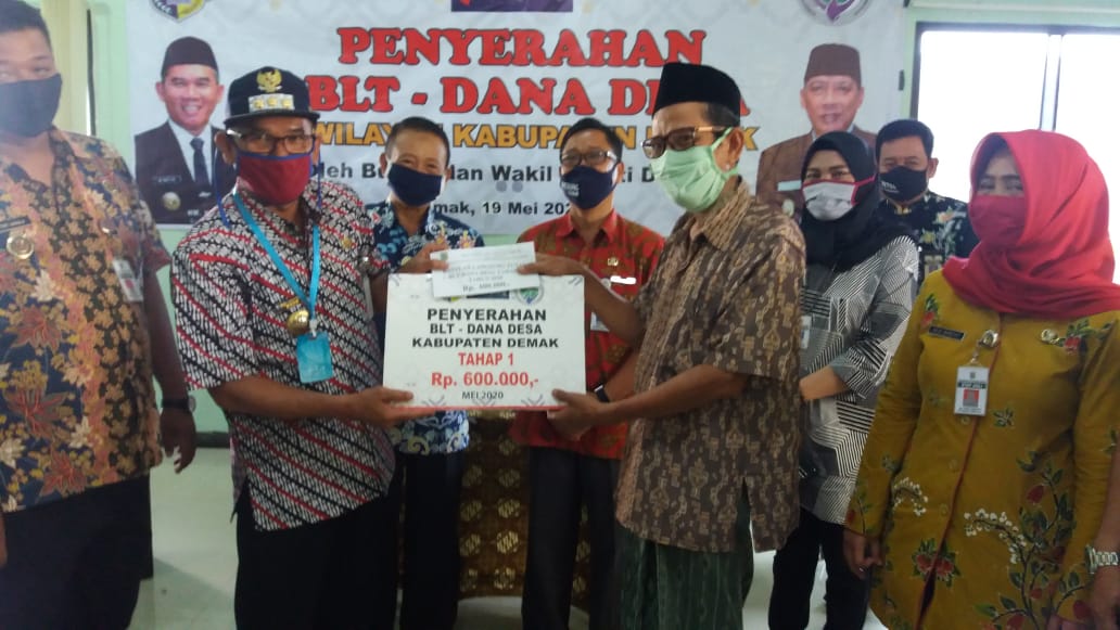 Demak-Pada hari Rabu tanggal 20 Mei 2020 pukul 11.00 WIB bertempat di Balai Desa Kenduren Kecamatan Wedung, Bapak Bupati Demak (HM. Natsir) Menyerahkan Secara Simbolis Bantuan Lansung Tunai (BLT) dari Dana Desa, khusus Desa Tempel Kecamatan Wedung total penerima BLT DD sebanyak 110 KPM. Dalam kesempatan ini hadir pula Kepala DinsosP2PA Kabupaten Demak, Staf Ahli Bupati, Camat Wedung.