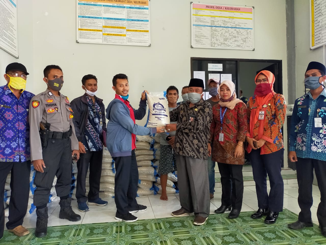 Wedung-TKSK Kecamatan Wedung (Hardi) memantau dan melaporkan Dropping dan Penyerahan barang bansos sembako JPS Kabupaten Demak dampak covid-19 di Desa Wedung Kecamatan Wedung mendapatkan 141 Paket, pada hari Rabu tanggal 13 Mei 2020 pukul 10.30 WIB bersama Kepala Desa, Babinsa dan Babinkamtibmas yang bertempat di Balai Desa Wedung Kecamatan Wedung.