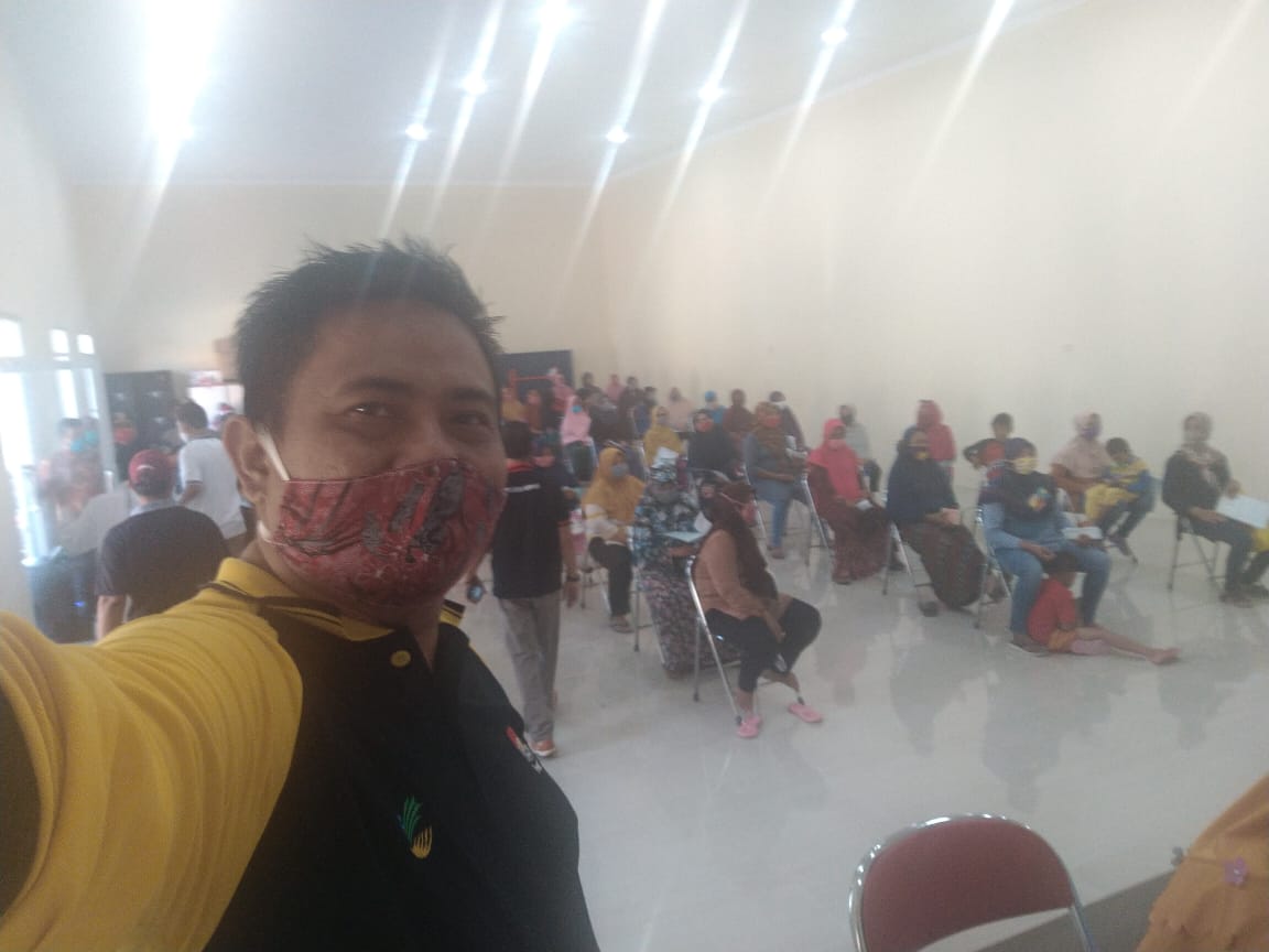 Koordinator Daerah (Korda) pada Dinas Sosial, Pemberdayaan Perempuan dan Perlindungan Anak Kabupaten Demak (Zakkie Nauval Idealima,SH,MH) didampingi TKSK Kecamatan Karangawen (Darsono,S.Ag) pada hari Sabtu tanggal 30 Mei 2020 pukul 09.00 WIB bekerjasama dengan BRI memantau pelaksanaan Penyaluran KKS untuk KPM Perluasan sembako di Desa Kuripan Kecmatan Karangawen meskipun di tengah mewabahnya Virus Covid-19, dilaksanakan sesuai dengan protokol Kesehatan atau SOP dalam rangka pencegahan penyebaran Covid-19 ini dilakukan dengan pemberian cairan antiseptik, wajib memakai masker dan pengaturan tempat duduk dengan berjarak kurang lebih 1 m.