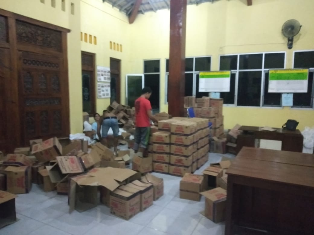 TKSK Kecamatan Kebonagung (ADI PUJO MURTI) hari Minggu tanggal 31 Mei 2020 telah memantau dan memonitor supplier bansos JPS provinsi tahap 1, bumdes maju lancar telah selesai menyediakan komoditas sembako 957 paket di 2 balai desa yang nanti menjadi tempat pendistribusian ke KPM, untuk hari Senin, 1 Juni 2020.