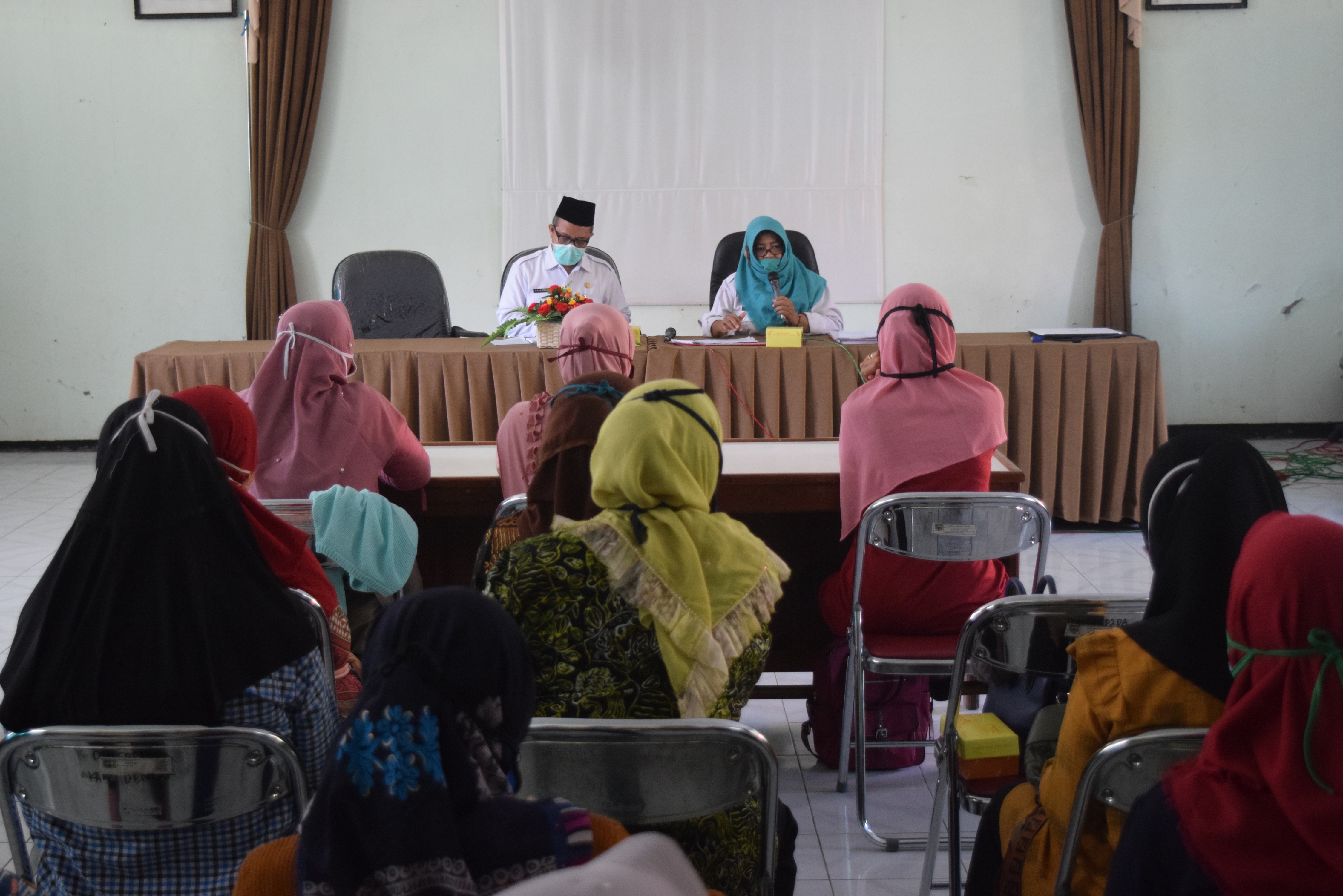 DINSOS P2PA KAB. DEMAK, Bidang P2PA pada hari Jum’at 5 Juni 2020 bertempat di Ruang Aula DINSOS P2PA Kab. Demak melaksanakan kegiatan Evaluasi JPE Pembuatan Masker Kain di kab. Demak dengan sasaran Perempuan Kepala Keluarga, Perempuan Rentan Lainya yang terdampak Covid 19 di Kab. Demak. Kegiatan di buka secara langsung oleh Kabid P2PA Drs. Candra Wijanarko, M.Si dan Kasi KHPK Rahayu Puji Lestari, S.SiT menyampaikan maksud dan tujuan kegiatan tersebut adalah Mengevaluasi hasil kinerja selama pembuatan masker kain , melengkapi administrasi yang belum lengkap serta pemberitahuan kesiapan kegiatan JPE dari DP3AP2KB Provinsi Jawa tengah tahap ke 2 yaitu membuat Face Sheld.