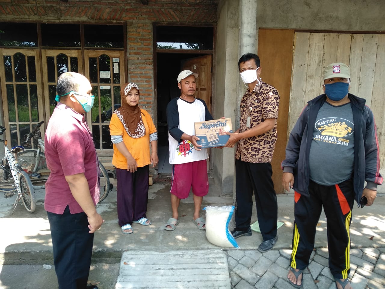 Penyaluran bantuan BerasĀ 10 kg dan 1 dus supermi pada hari Selasa tanggal 9 Juni 2020 pukul 13.10 WIB kepada Bapak Suyono tetangga Ibu Muniroh yang terpapar Covid-19 di Desa Sumberejo Rt 03 Rw 06 Kecamatan Mranggen yang disaksikan oleh Kepala Desa Sumberejo Kecamatan Mranggen, Perangkat desanya dan Relawan Tagana dari Pemerintah Kabupaten Demak melalui Dinas Sosial, Pemberdayaan Perempuan dan Perlindungan Anak Kabupaten Demak yang dalam hal ini diwakili Kasi Perlindungan Sosial Korban Bencana (Haryono).