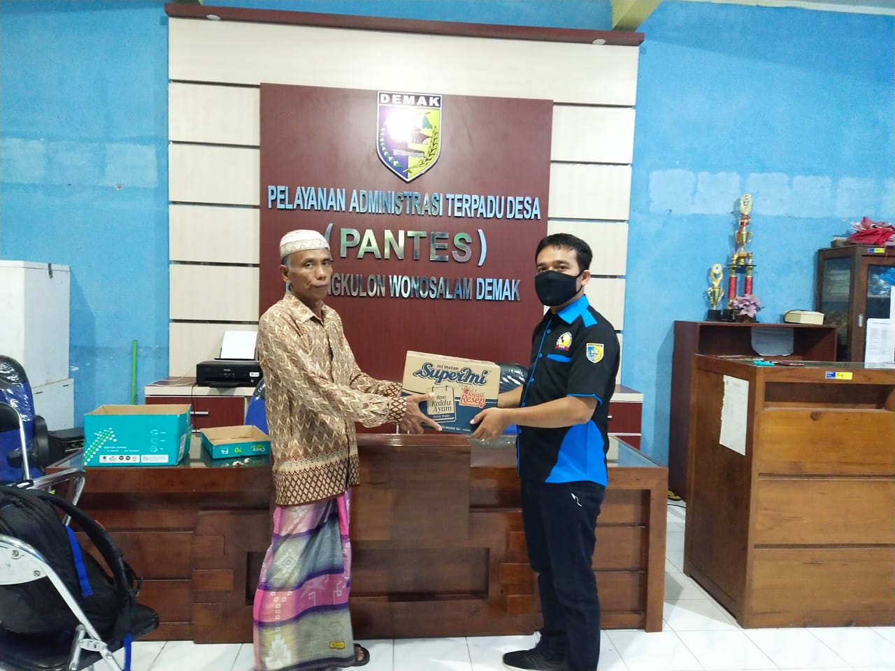 Warga masyarakat yang terdampak COVID-19 di Desa Kerangkulon Kecamatan Wonosalam dapatkan paket sembako JPS Kabupaten untuk tahap II sebanyak 92 Paket Sembako. TKSK Kecamatan Wonosalam (Muhammad Saepuri,S.Pd) melaksanakan Penyerahan secara Simbolis Sembako JPS Kabupaten Tahap II kepada Masyarakat yang berhak menerimanya Desa Kerangkulon Kecamatan Wonosalam, pada hari Rabu tanggal 17 Juni 2020 pukul 18.15 WIB, bertempat Balai Desa Kerangkulon Kecamatan Wonosalam,