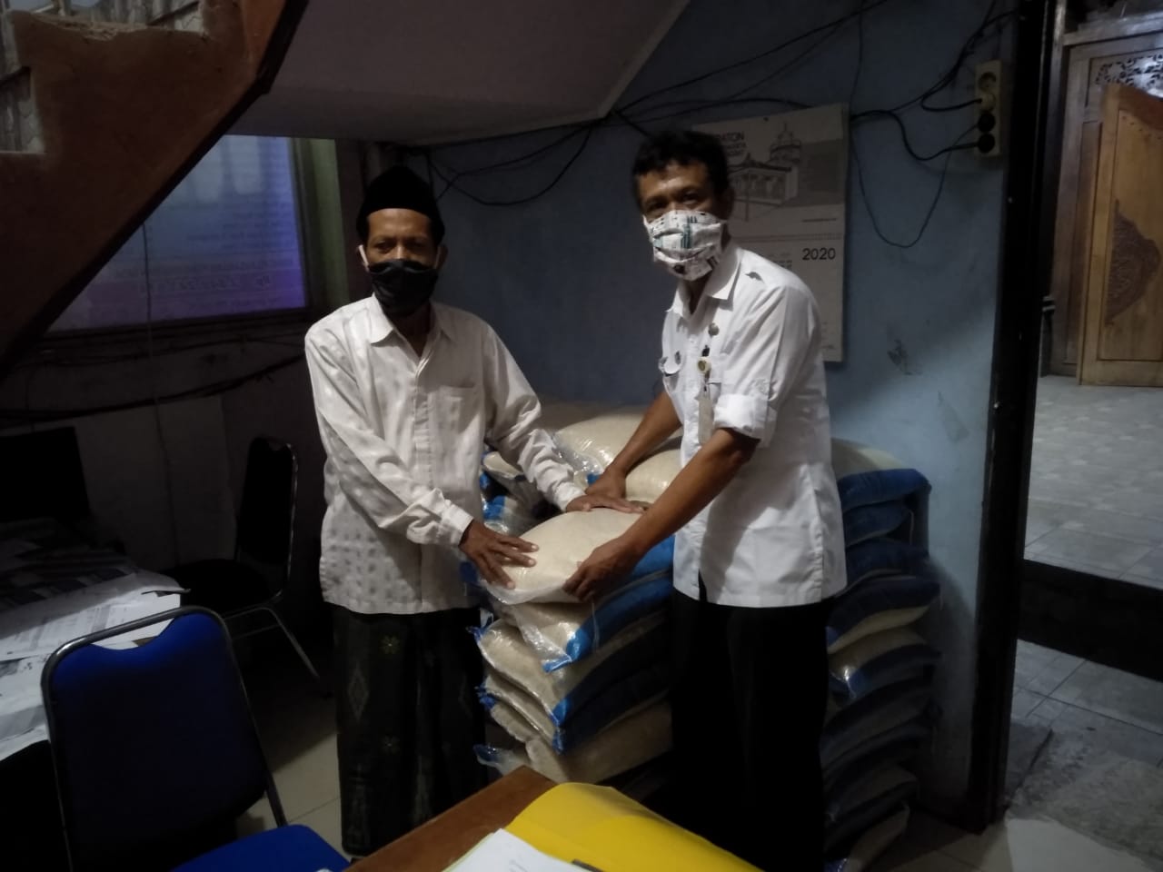 Relawan Tagana Kecamatan Karangawen Kabupaten Demak (Mustafydz Amma) pada hari Jum’at tanggal 24 Juli 2020 pukul 18.00 WIB Pemerintah Kabupaten Demak melalui Dinas Sosial, Pemberdayaan Perempuan dan Perlindungan Anak Kabupaten Demak melaksanakan memantau pendistribusian sembako untuk 59 KK (198 jiwa) masyarakat yang terdampak Covid-19 di Desa Wedung Kecamatan Wedung yang berupa beras 59 zak dan Mie Instant 59 Dos diterima oleh Kepala Desa Wedung Kecamatan Wedung yang diserahkan oleh Kepala seksi Perlindungan Sosial Korban Bencana pada Bidang Linjamsos DinsosP2PA Kabupaten Demak (Haryono) bertempat di balai Desa Wedung Kecamatan Wedung.