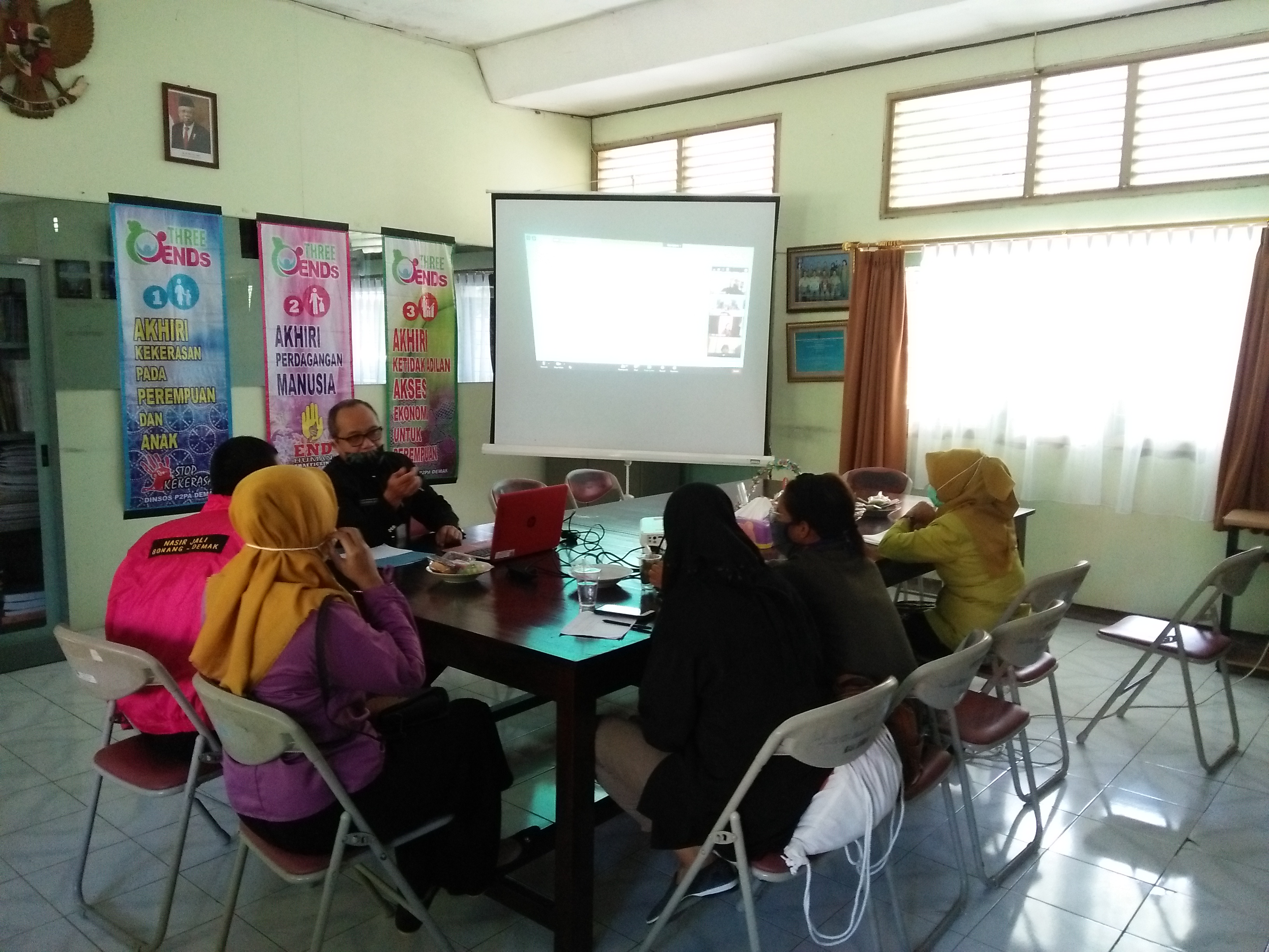 BIDANG P2PA KAB. DEMAK, Selasa 28 Juli 2020 bertempat di ruang rapat bidang P2PA melaksanakan undangan Vicon dari Dinas Pemberdayaan Perempuan, Perlindungan Anak, Pengendalian Penduduk Dan Keluarga Berencana Prov. Jawa Tengah. Kepala Bidang P2PA Drs. Candra Wijanarko, M.Si beserta Kasi Kasi KHA Sekhatul Solekhah, S.Sos, Kasi PPA Ana Istiqomah, S. Psi, Psi, dan bersama Forum Anak Demak dengan Genre melaksanakan Vicon Dalam rangka Rangkaian Peringatan Hari Anak Nasional tingkat Provinsi Jawa Tengah, Webinar Series Pengasuhan Anak di Situasi Pandemi Covid 19 Penguatan Keluarga dan Layanan Berbasis Masyarakat untuk Deteksi Dini dan Pencegahan Kekerasan terhadap Anak dengan keynote speaker : Hj. Nawal Arafah Yasin (Ketua Umum BKOW Jawa Tengah). Materi yang disam[paikan membahas tentang parenting, hak anak, peran Puspaga, PATBM.