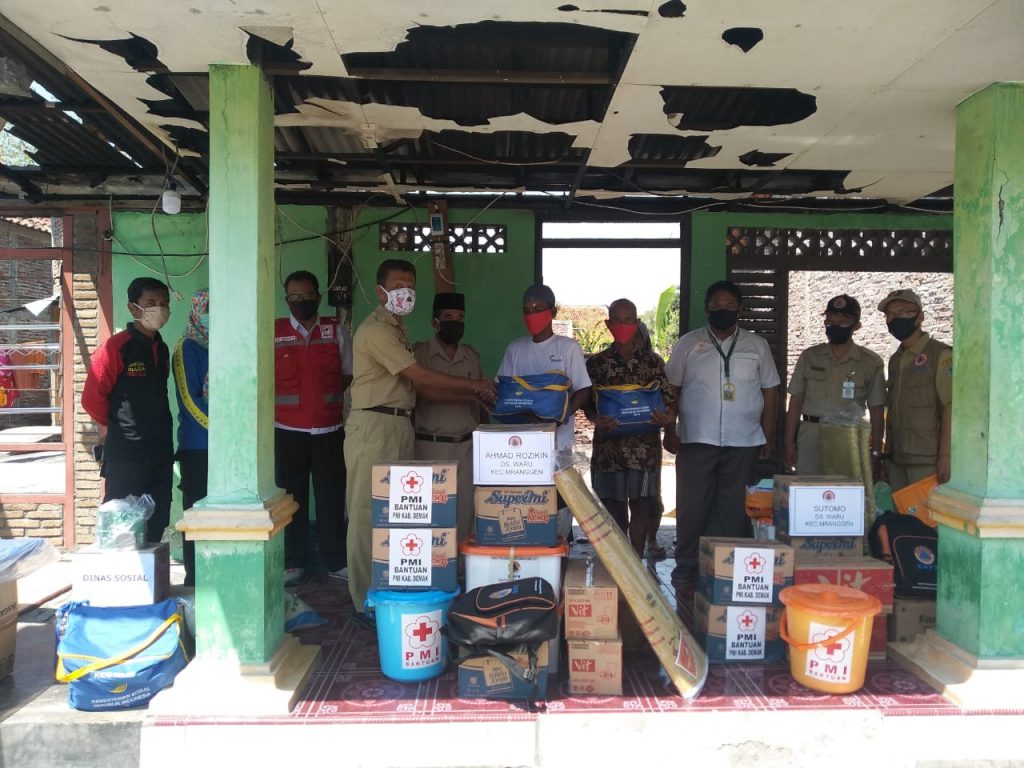 DEMAK-Pelaksanaan Pemberian bantuan kepada warga masyarakat yang terkena Bencana Kebakaran pada hari Rabu tanggal 19 Agustus 2020 pukul 17.30 WIB Rumah Milik Bapak AHMAD ROZIKIN dan Bapak SUTOMO alamat Dukuh Kalimas Desa Waru Rt 02 Rw 07 Kecamatan Mranggen dikarenakan Konsleting Listrik.
