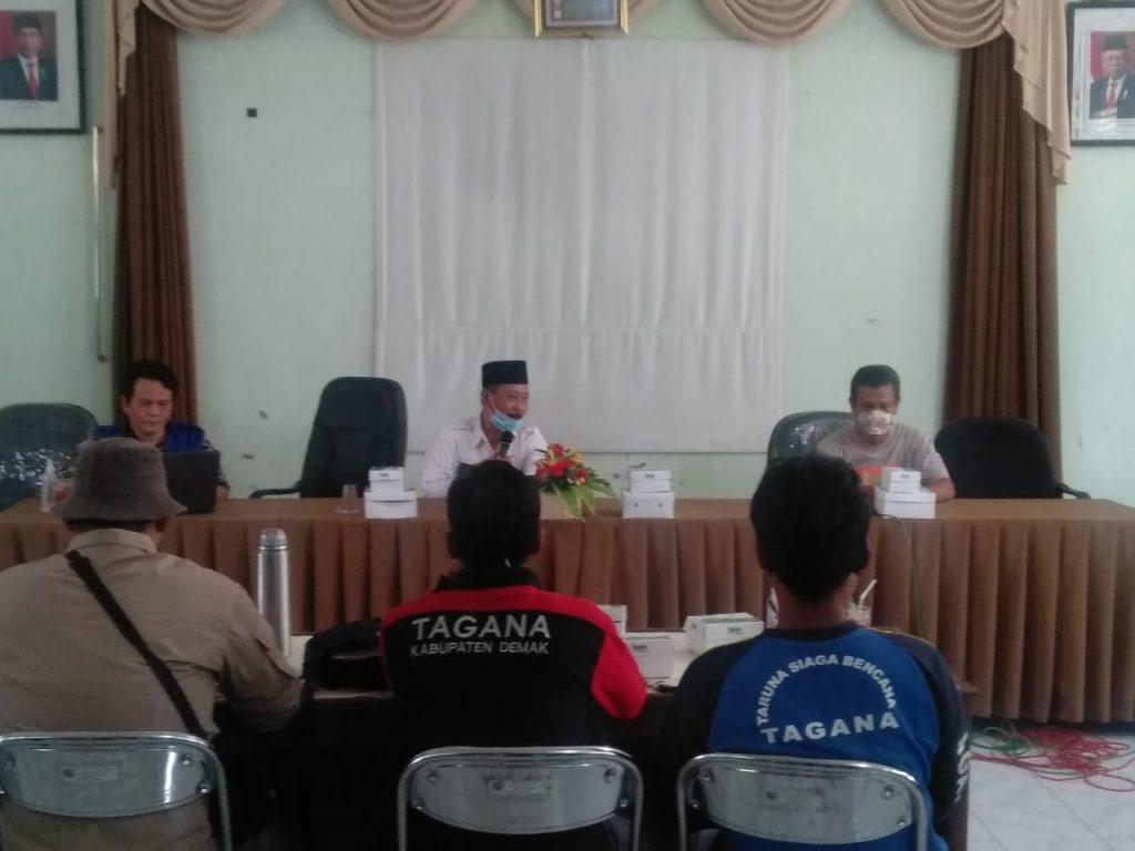 Demak-Pelaksanaan Rapat Koordinasi Taruna Siaga Bencana (TAGANA) Triwulan 3 tingkat Kabupaten Demak, hari Jumat tanggal 11 September 2020 jam 13.30-16.00 WIB betempat di Aula Dinas Sosial, Pemberdayaan Perempuan dan Perlindungan Anak Kabupaten Demak.