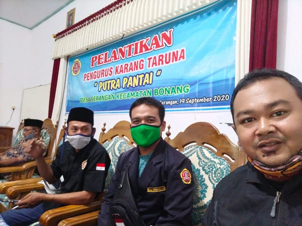 TKSK Kecamatan Bonang (Taslim) telah melaksanakan monitoring Pelantikan Pengurus Karang Taruna “Putra Pantai” Desa Serangan Kecamatan Bonang Demak, pada hari Sabtu tanggal 19 September 2020 pukul 20.30 WIB bertempat di Balai Desa Serangan Kecamatan Bonang, yang melantik Kepala Desa Serangan Kecamatan Bonang Demak juga disaksikan dari Tim Pengurus Karang Taruna Kabupaten Demak. Pesan dari Kepala Desa Serangan Kecamatan Bonang Demak agar karang taruna di desa ini dapat membantu kegiatan yang ada di desa.