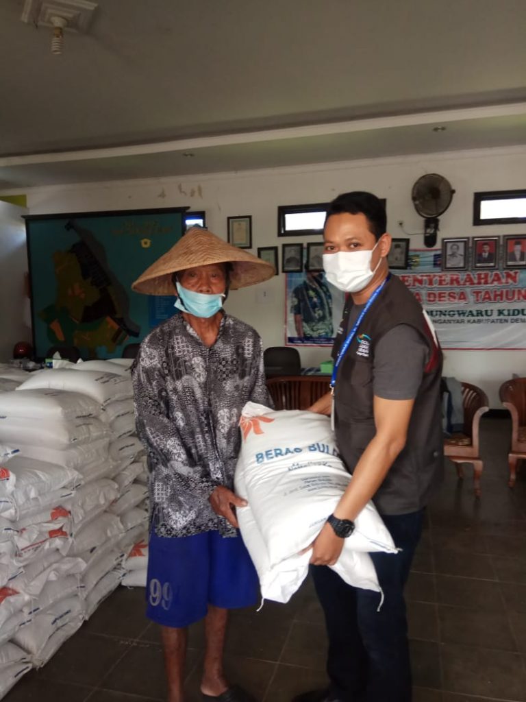 Minggu, 27 September 2020, Pendamping Sosial PKH Kecamatan Karanganyar, EKHSAN NOR, S.Pd.I, memonitor penyaluran Bantuan Sosial Beras (BSB) yang dilaksanakan di Balai Desa Kedungwaru Kidul, Kecamatan Karanganyar. Pada tahap ini, setiap KPM PKH menerima beras sebanyak 30KG, untuk bulan Agustus & September 2020. Proses penyaluran BSB berjalan lancar dan menerapkan protokol Covid-19 yaitu memakai masker, mencuci tangan, dan menjaga jarak.