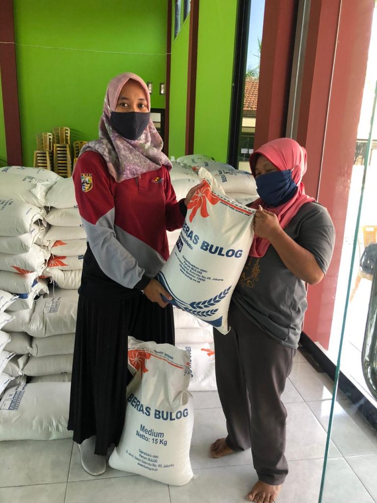 Minggu, 27 September 2020, Pendamping Sosial PKH Kecamatan Gajah, USI DAMANTI, S.I.P, memonitor penyaluran Bantuan Sosial Beras (BSB) kepada 169 KPM PKH yang dilaksanakan di Balai Desa Tambirejo, Kecamatan Gajah yang dilaksanakan pada pukul 07.30 – 10.30 WIB. Pada tahap ini, setiap KPM PKH menerima beras sebanyak 30KG, untuk bulan Agustus & September 2020. Proses penyaluran BSB berjalan lancar dan menerapkan protokol Covid-19 yaitu memakai masker, mencuci tangan, dan menjaga jarak.