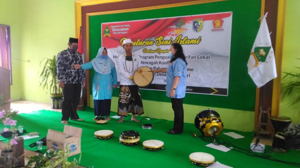 Pada hari Minggu tanggal 4 Oktober 2020 pukul 11.30-12.30 WIB, bertempat Aula Kecamatan Karangtengah telah diserahkan satu paket Perlengkapan Alat Seni Hadroh untuk Pentas/Pagelaran Seni Islami dalam rangka kegiatan Kearifan Lokal di Kabupaten Demak, dari Kementerian Sosial RI yang diwakili Dinas Sosial Provinsi kepada Ketua Paguyuban Seni Islami Darussalam Desa Karangsari Kecamatan Karangtengah.