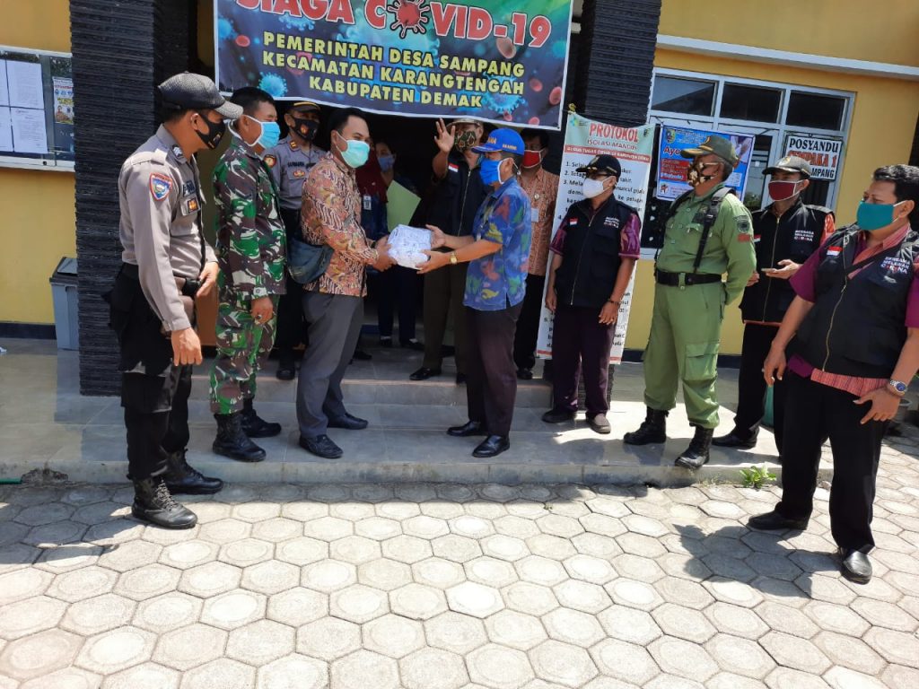 Bertempat di Balai Desa Sampang Kecamatan Karangtengah pada hari Selasa tanggal 6 Oktober 2020 pukul 09.00 WIB, untuk pembagian Masker di Desa Sampang Kecamatan Karangtengah, dalam rangka pencegahan virus Covid-19 di Kabupaten Demak, Tim Satgas Kab. Demak dariĀ DINSOSP2PA Kab. Demak dan Dinas LH Kabupaten Demak. Kepala Bidang Rehabilitasi Sosial pada DinsosP2PA Kabupaten Demak (Drs. Mukhamad Romli,MM), Kepala Seksi Disabilitas dan tim/pelaksana Bidang Rehabsos pada Dinas Sosial, Pemberdayaan Perempuan dan Perlindungan Anak Kabupaten Demak menyerahkan secara simbolis kepada Kepala Desa Sampang Kecamatan Karangtengah untuk dibagikan kepada masyarakat yang tidak memakai masker dalam beraktifitas/bekerja di luar rumah.