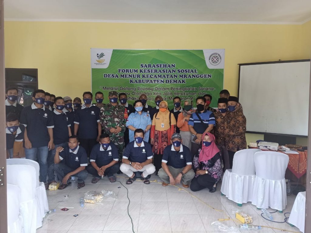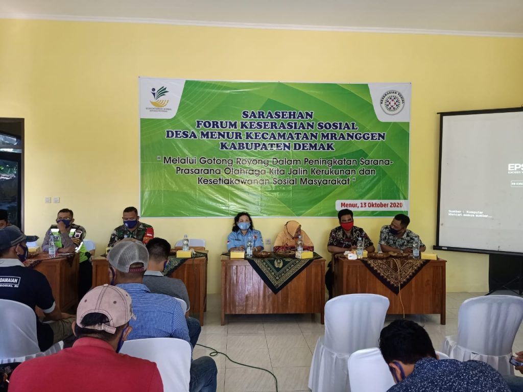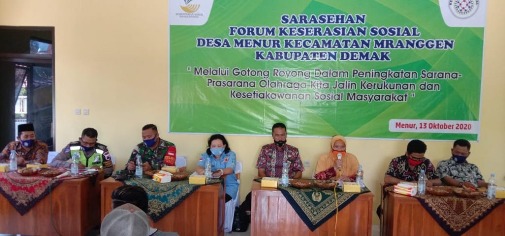 Pada hari Selasa tanggal 13 Oktober 2020, pukul 09.30 – 12.00 WIB bertempat di Ruang Pertemuan Desa Menur Kecamatan Mranggen telah dilaksanakan Dialog Tematik 1 atau Saresehan oleh Forum Keserasian Sosial Barokah, dengan tema Melaui Gotong-royong dalam peningkatan sarana prasarana olahraga kita jalin kerukunan dan kesetiakawanan sosial masyarakat. Acara tersebut merupakan tindak lanjut dari program bantuan bencana sosial yang tangani oleh Kementerian Sosial untuk menyelesaikan konflik sosial. Di Desa Menur Kecamatan Mranggen, yang timbul dari permasalahan antara para pemuda dimana sarana prasarana olahraga yang jelek dan rusak.
