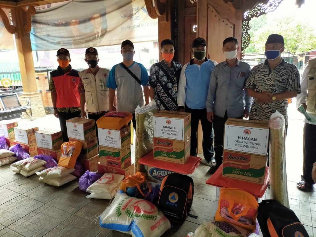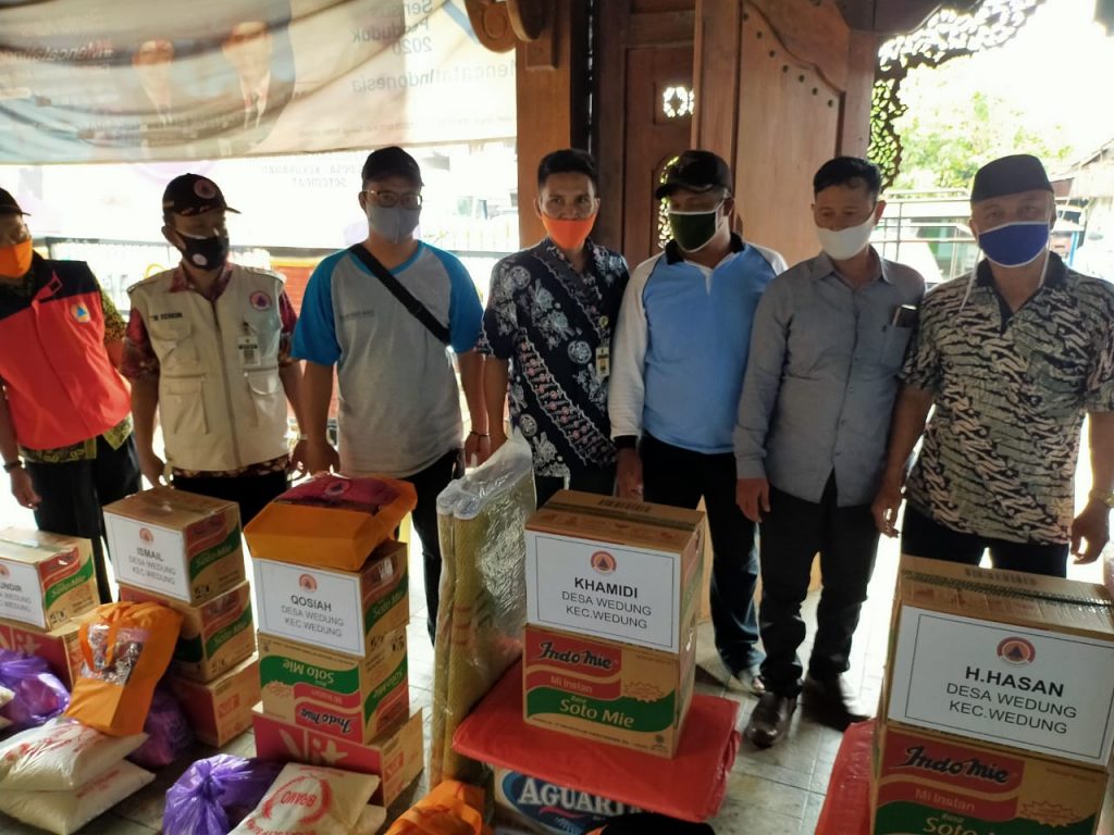 TKSK Kecamatan Wedung (HARDI) memantau Pemberian bantuan kepada Bapak Ismail, Khamdi, Mundhir, Ibu sumiyati, Ibu Khosiyah, H.Hasab Basri, Tumizan yang beralamatkan di Dukuh Gojoyo Desa Wedung Kecamatan Wedung dilaksanakan hari Rabu tanggal 21 Oktober 2020 pukul 11.10 WIB oleh Tim Kebencanaan Kabupaten Demak, yang disaksikan dari Kasi Kesra Kecamatan Wedung, Kepala Desa Wedung, TKSK Kecamatan Wedung, Relawan PMI, BPBD, Babinsa dan Bhabinkantibmas. Tim Kebencanaan Kabupaten Demak terdidri dari Baznas, PMI dan BPBD Kabupaten Demak.