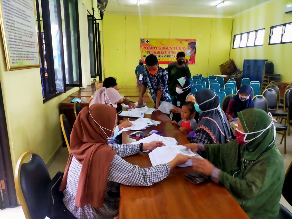 TKSK Kecamatan Wedung (HARDI) memantau dan melaporkan pendampingan proses penyaluran BST tahap 7 hari kedua Kecamatan Wedung, pada hari Rabu 21 Oktober 2020 pukul 07.00-10.00 WIB. Dengan tetap memperhatikan protokol kesehatan setiap KPM yang mengambil BST tersebut memakai masker. bertempat di Aula Kecamatan Wedung. Untuk pembagian bulan Oktober ini setiap KPM akan menerima bantuan sebesar Rp. 300.000,-. Kecamatan Wedung mendapatkan BST sebanyak 2.541 KPM, penyaluran BST Tahap 7 hari kedua sebanyak 325 KPM dari 3 desa yaitu Desa Jetak, Jungpasir dan Desa Jungsemi terpantau alhamdulillah berjalan dengan lancar, KPM dalam pengambilan BST tersebut membawa KTP dan KK selanjutnya difoto oleh Petugas Pos.