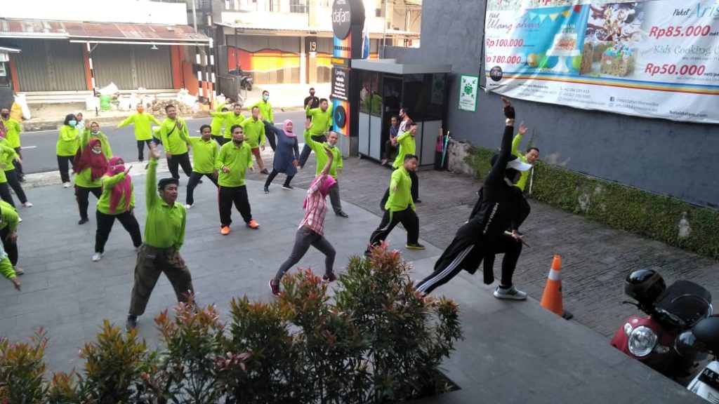 DINSOS P2PA Kabupaten Demak Senam Pagi di Halaman Hotel Dafam Wonosobo