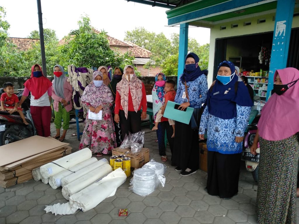 Pada hari Kamis tanggal 17 Desember 2020, Kepala Bidang Perlindungan dan Jaminan Sosial sekaligus Plt Kepala Bidang P2PA pada Dinas Sosial, Pemberdayaan Perempuan dan Perlindungan Anak Kabupaten Demak (TITIK BUDIYANTI,SH,MH) dan Tim Pelaksana Bidang P2PA DinsosP2PA Kabupaten Demak melaksanakan droping bahan-bahan pembuatan Face Shield untuk Jaring Pengaman Ekonomi (JPE) Masyarakat Terdampak COVID-19 untuk kelompok Mapan (Siti Zubaedah) alamat Dukuh Pundenarum RT 01 RW 03 Desa Kedunguter dan Kelompok Mumpuni (Sri Wartini) alamat Dukuh Gedungrejo Desa Kedunguter Rt 01 RW 02 Kecamatan Karangtengah yang langsung terima oleh ketua kelompok Mapan ketua kelompok mumpuni tersebut, sedangkan barang yang diserahkan untuk setiap kelompok adalah berupa mika 3,5 Gulung, busa 7 lembar, lem super 16 kaleng, paku keling 41 bungkus, elastik 11 roll, stiker dewasa 1.200 lembar, stiker anak 600 lembar dan kardus 18 buah. Tujuan dalam pembuatan Face Shield dengan diberikan upah untuk meningkatkan kesejahteraan dan pendapatan Perempuan kepala keluarga atau perempuan rentan lainnya.