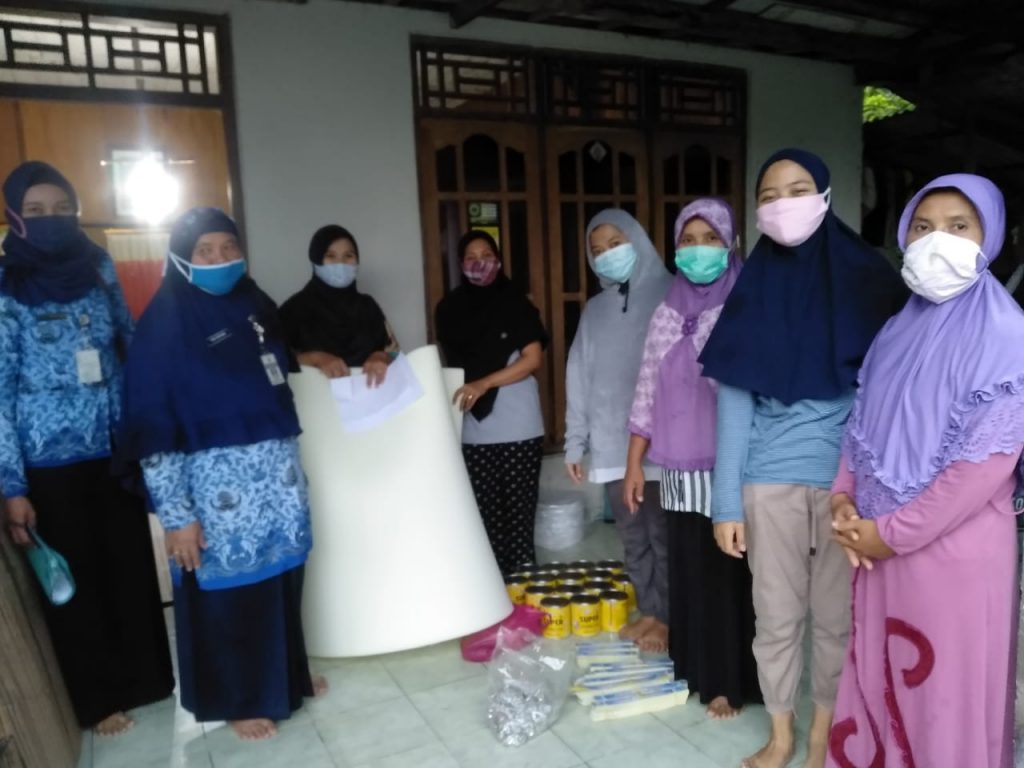 Kepala Bidang Perlindungan dan Jaminan Sosial sekaligus Plt Kepala Bidang P2PA pada Dinas Sosial, Pemberdayaan Perempuan dan Perlindungan Anak Kabupaten Demak (TITIK BUDIYANTI,SH,MH) dan Tim Pelaksana Bidang P2PA Dinsos P2PA Kabupaten Demak (Dita Ayu) melaksanakan pembagian dan droping bahan-bahan pembuatan Face Shield untuk Jaring Pengaman Ekonomi (JPE) Masyarakat Terdampak COVID-19 untuk kelompok Karangawen (Sulasmi) alamat Desa Sidorejo RT 05 RW 05 Kecamatan Karangawen yang langsung terima oleh ketua kelompok Karangawen tersebut pada hari Kamis tanggal 17 Desember 2020, sedangkan bahan yang diserahkannya adalah berupa Mika 3½ gulung, Busa 7 lembar, Lem Super 16 kaleng, Paku Keling 41 bungkus, Elastik 11 roll, Stiker Dewasa 1.200 lembar, Stiker Anak 600 lembar dan Kardus 18 buah, dengan tetap memperhatikan protokol kesehatan dengan memakai masker. Sebagai jaring pengaman ekonomi, kegiatan peningkatan produktivitas ekonomi perempuan kepala keluarga dan perempuan rentan lainnya dimaksudkan untuk memberdayakan perempuan kepala keluarga dan perempuan rentan lainnya di Kab. Demak agar dimasa pandemi covid-19 ini masih tetap bisa berdaya untuk tetap produktif guna keberlangsungan ekonomi. Tujuan dalam pembuatan Face Shield bagi perempuan rentan dengan diberikan upah untuk meningkatkan kesejahteraan dan pendapatan Perempuan kepala keluarga atau perempuan rentan lainnya.