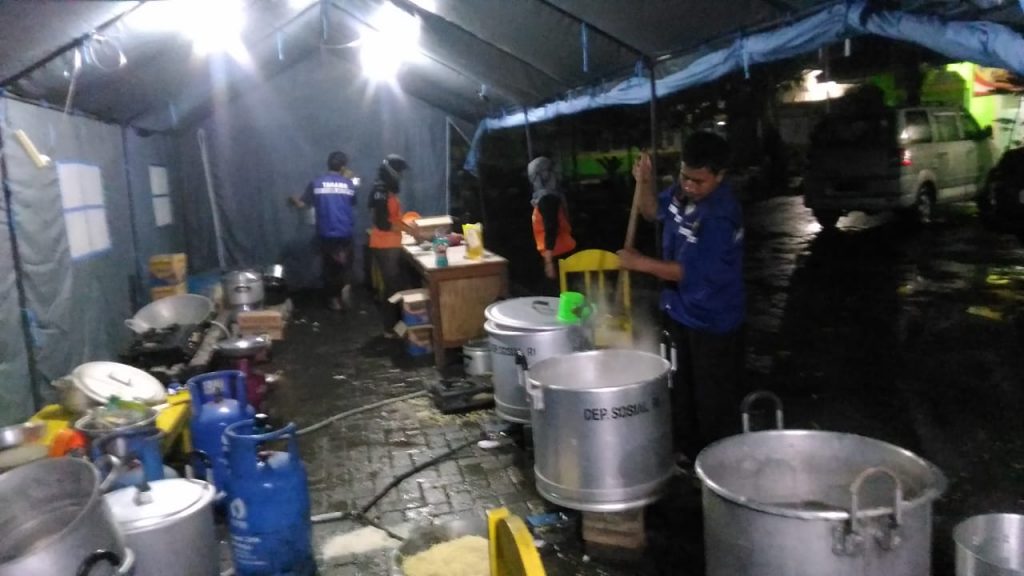 Permintaan dari Kepala Desa Medini Kecamatan Gajah dan Kepala Desa Desa Ngemplik Wetan Kecamatan Karanganyar karena ada tanggul yang jebol, banyaknya relawan yang sejak siang hari pada belum makan maka pada hari Minggu tanggal 31 Januari 2021 pukul 20.00 WIB sampai selesai, Relawan Tagana Kabupaten Demak pada Dinas Sosial, Pemberdayaan Perempuan dan Perlindungan Anak Kabupaten Demak membuka Dapur Umum (DU) ini memasakkan 1.000 bungkus yang rencana untuk masyarakat yang bekerja memperbaiki tanggul yang bobol untuk 3 Desa yaitu Desa Wilalung, Desa Medini Kecamatan Gajah dan Desa Ngemplik Wetan Kecamatan Karanganyar yang dibantu relawan pramuka dan Dishub Kabupaten Demak.