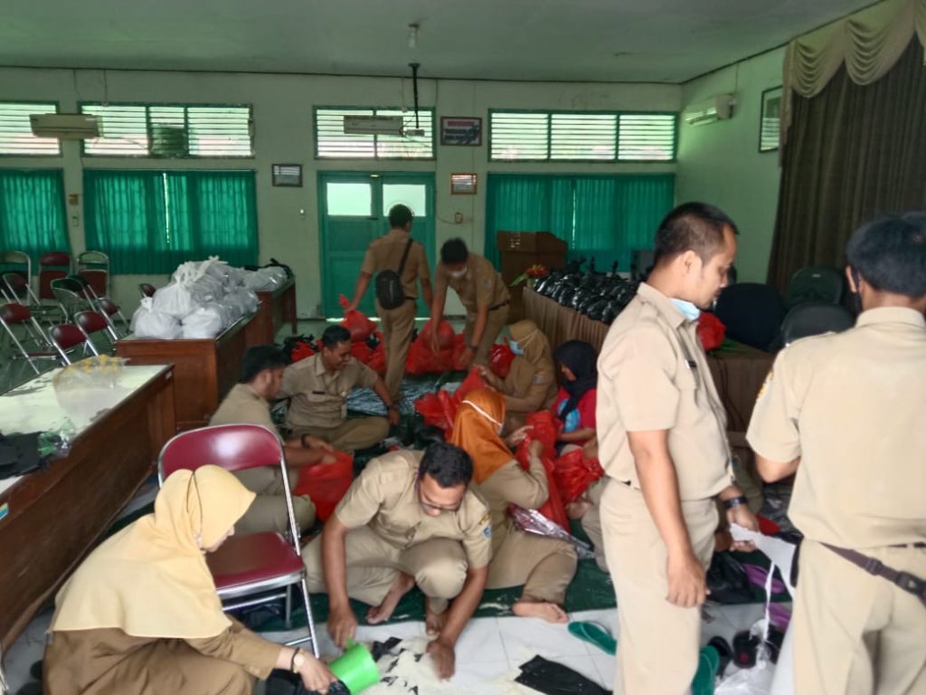 Pada hari Senin tanggal 15 Februari 2021 pukul 13.50 WIB bertempat di Aula Dinsosp2pa Kabupaten Demak, Pelaksana pada Bidang Linjamsos Dinas Sosial, Pemberdayaan Perempuan dan Perlindungan Anak Kabupaten Demak (Ririn Iswati dan Hari Purnomo) yang dibantu oleh pelaksana di Dinsosp2pa Kabupaten Demak melaksanakan pembungkusan sembako sebanyak 250 bungkus untuk 3 Desa yaitu Desa Sidorejo dan Desa Banjarsari Kecamatan Sayung serta Desa Tambakbulusan Kecamatan Karangtengah.
