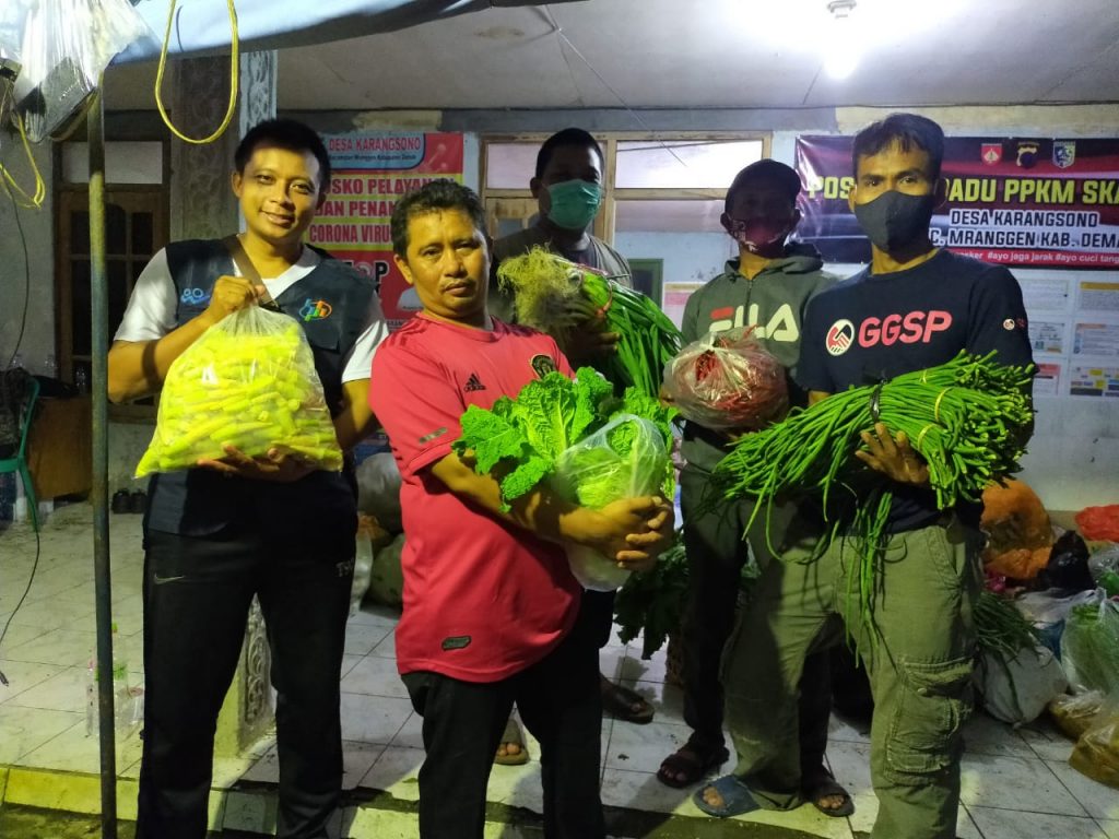 TKSK Kecamatan Mranggen (MAT ROJIKAN) pada hari Jum’at tanggal 26 Februari 2021 pukul 21.10 WIB menyaksikan penyerahan donasi dari paguyuban agen sembako Kecamatan Mranggen berupa sayur mayur yang diterima langsung oleh Kepala Desa Karangsono Kecamatan Mranggen untuk membantu Dapur Umum pada Desa Karangsono Kecamatan Mranggen di halaman Balai Desa Karangsono Kecamatan Mranggen Kabupaten Demak yang juga disaksikan dari Pramuka Peduli, Relawan Tagana lainnya, untuk membantu warga masyarakat yang terkena bencana angin putting beliung.