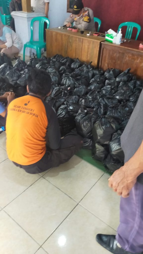 Pembungkusan Bantuan Di Posko Desa Karangsono Kecamatan Mranggen