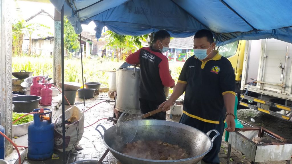 Pada hari Jum’at tanggal 26 Pebruari 2021 pukul 09.40 WIB, hari keempat pelaksanaan Dapur Umum oleh Relawan BPBD di Posko DU Desa Karangsono Kecamatan Mranggen, TKSK Kecamatan Mranggen (MAT ROJIKAN) memantau mulai pembungkusan nasi untuk makan siang, untuk korban angin puting beliung Desa Karangsono Kecamatan Mranggen bertempat di Posko DU Balai Desa Karangsono Kecamatan Mranggen yang dilaksanakan oleh Relawan Tagana Kabupaten, Pramuka Peduli, Relawan BPBD dan relawan lainnya yang peduli.