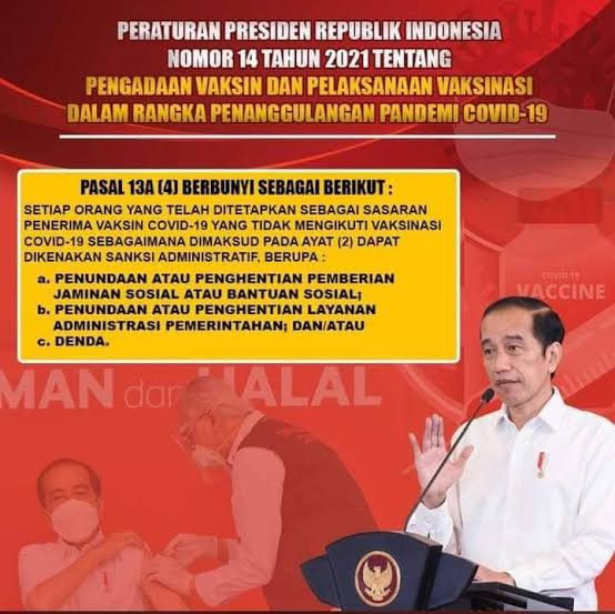 Berdasarkan Peraturan Presiden Nomor 14 Tahun 2021 tentang Pengadaan Vaksin dan Pelaksanaan Vaksinasi dalam rangka Penanggulangan Pandemi Covid-19 pada pasal 134 ayat 4 berbunyi sebagai berikut “Setiap orang yang telah ditetapkan sebagai sasaran penerima vaksin Covid-19 yang tidak mengikuti vaksinasi Covid-19 sebagaimana dimaksud pada ayat (2) dapat dikenakan sanksi administratif, berupa a. Penundaan atau penghentian pemberian jaminan sosialanatau bantuan sosial, b. penundaan atau penghentian layanan adminstrasi pemerintahan, dan atau c. Denda, sehingga apabila ada KPM PKH atau KPM Sembako apabila akan mencairkan Bansosnya harus menunjukkan sertifikat vaksin.