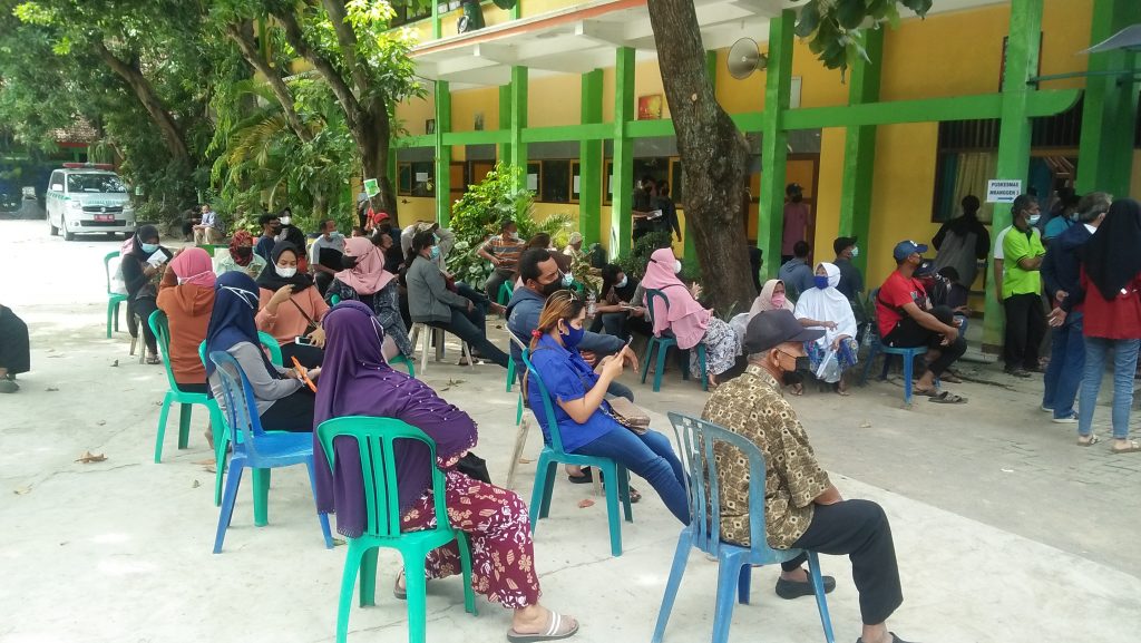 D E M A K, Selasa 14 Juli 2021 Tim DINSOS P2PA Kab. Demak Melaksanakan Kegiatan Monitoring Vaksinasi, yang dilaksanakan di Mranggen pada Pukul 08.00 Wib dengan jumlah Peserta Vaksin ± 1.050. Layanan Vaksinasi Covid-19 gratis dilayani salah satunya di Kecamatan Mranggen dengan lokasi di SMPN 3 Mranggen tidak ada batasan baik muda hingga dewasa semuanya bisa mendaftar program Vaksinasi. Vaksinasi ini untuk mendapatkan herd immunity di masyarakat,. Harapannya dengan tambahan vaksin dapat mengurangi transmisi atau penularan Covid-19, mencapai kekebalan kelompok di masyarakat dan sebagai upaya penanganan Pandemi Covid-19 dapat segera berakhir.