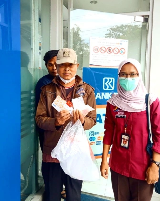 Pendamping Sosial PKH kecamatan Bonang, Inna Istiqomah mendampingi KPM atas nama Sukarto dalam mengambil buku tabungan dan KKS baru di BRI Unit Demak Kota pada hari ini (16/06).
