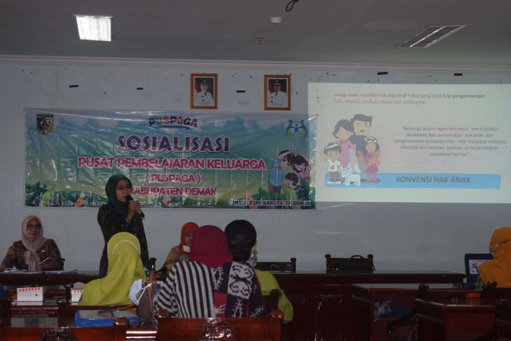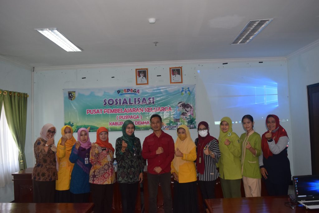 Subkor KHPK (Ratih Damayanti, SH) dan Subkor PPA (Ana Istiqomah, S.Psi, Psi) melaksanakan kegiatan Sosialisasi Pusat Pembelajaran Keluarga (PUSPAGA) yang di selenggarakan di Ruang Rapat Wakil Bupati Lantai 2 Kab. Demak. Peserta yang di Hadirkan PKK Kab. Demak, GOW Kab. Demak, PPA POLRES Demak, RSI NU Demak, RSUD Sunan Kalijaga Demak dan RS. Pelita Anugerah Mranggen. Dengan Narasumber Arida Nuralita, S.Psi, MA dari PUSPAGA Jawa Tengah.