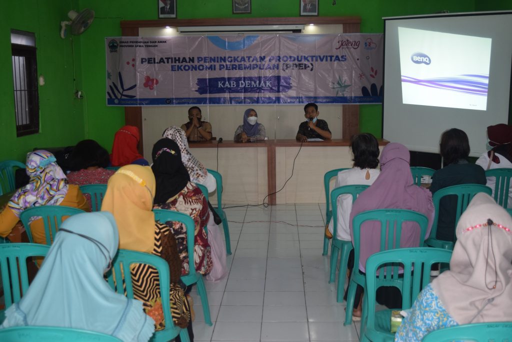 Dalam rangka melaksanakan kegiatan Pelatihan Peningkatan Produktivitas Ekonomi Perempuan (PPEP) Kabupaten Demak yang diselenggarakan di Desa Kebonbatur Mranggen. Bertempat di Ruang Aula Balai Desa Kebonbatur Kec. Mranggen dengan peserta yang hadir sebanyak 20 orang peserta sesuai kriteria yang telah ditentukan dengan prioritas peserta perempuan kepala keluarga yang suaminya meninggal dikarenakan covid 19. Acara dibuka secara langsung oleh Sekretaris Desa Kebonbatur dengan pemberian motivasi kepada peserta yang hadir dan dilanjutkan dengan laporan kegiatan serta pemberian arahan dari Kasi Kualitas Hidup Perempuan DP3AP2KB Prov. Jawa Tengah (Melati Diah Pamungkas, SE, MM) serta didampingi Staf Bidang P2PA Kab. Demak (Kusmiyati beserta Winatalia Mega K, SH).