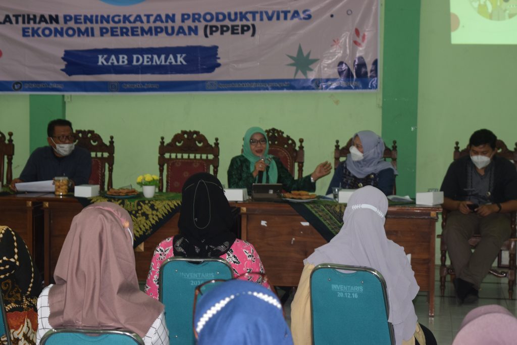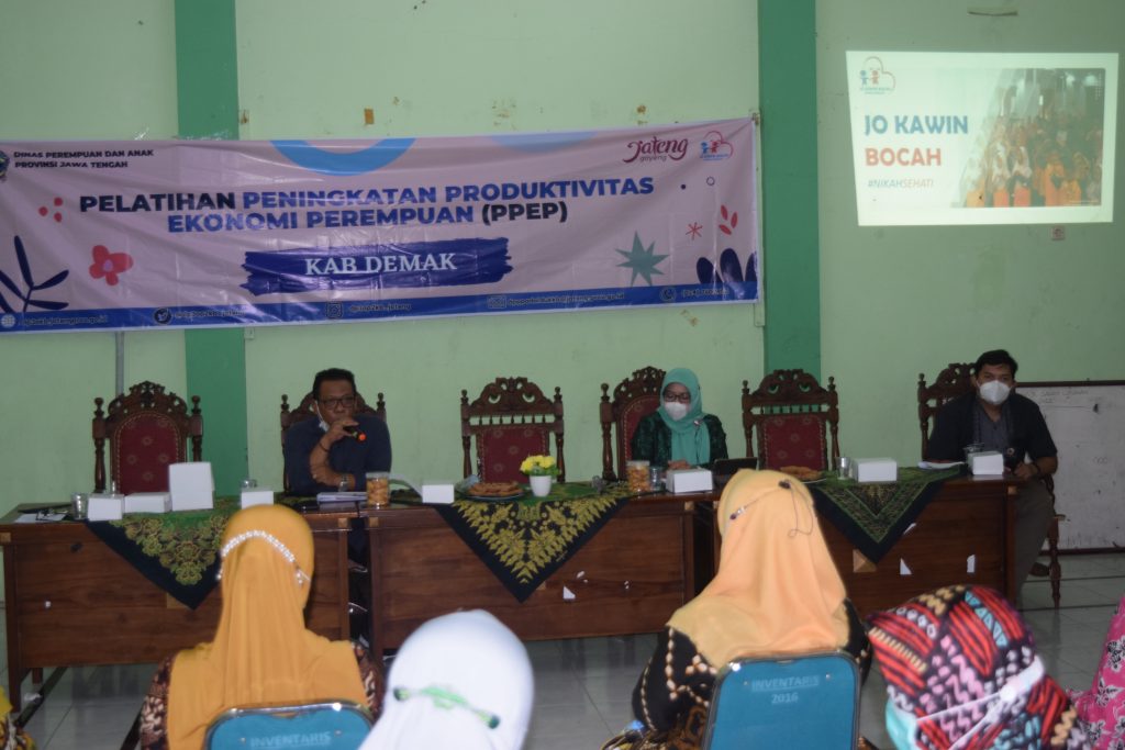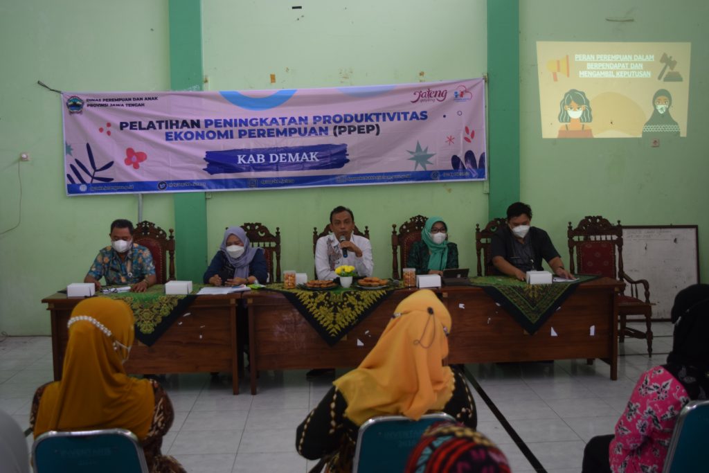 Bidang Pemberdayaan Perempuan dan Perlindungan Anak (P2PA) Kabupaten Demak Bersinergi bersama Dinas Pemberdayaan Perempuan ,Perlindungan Anak, Pengendalian Penduduk dan Keluarga Berencana (DP3AP2KB) Prov. Jawa Tengah. Melaksanakan kegiatan Dalam Rangka Pelatihan Peningkatan Produktivitas Ekonomi Perempuan (PPEP) Tahap 2 Kabupaten Demak Tahun 2021. Bertempat di Ruang Gor Desa Poncoharjo Bonang, dengan 20 orang peserta perempuan sesuai kriteria yang telah ditentukan dengan pioritas peserta perempuan kepala keluarga yang suaminya meninggal karena Covid-19. Kegiatan dibuka secara langsung oleh Sekretaris Desa Poncoharjo sekaligus moderator acara dan dilanjutkan dengan laporan kegiatan dari Kasi Pemenuhan Hak Anak DP3AP2KB Prov. Jawa Tengah (Ardian Agil Waskito, S.Psi) selanjutnya Pengarahan dari Plt. Kabid Bidang P2PA Kab. Demak (Maftukhah Kurniawati, SH.MH).